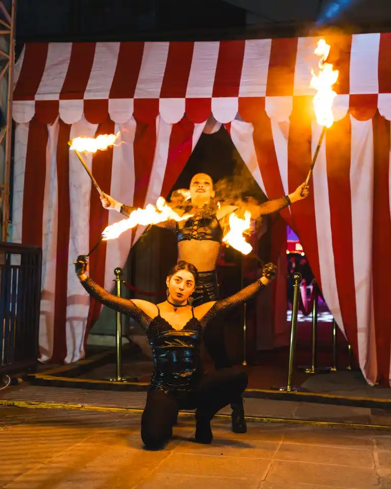Nuestros shows combinan humor, destreza física y estética circense contemporánea, logrando un espectáculo que cautiva tanto a adultos como a jóvenes.