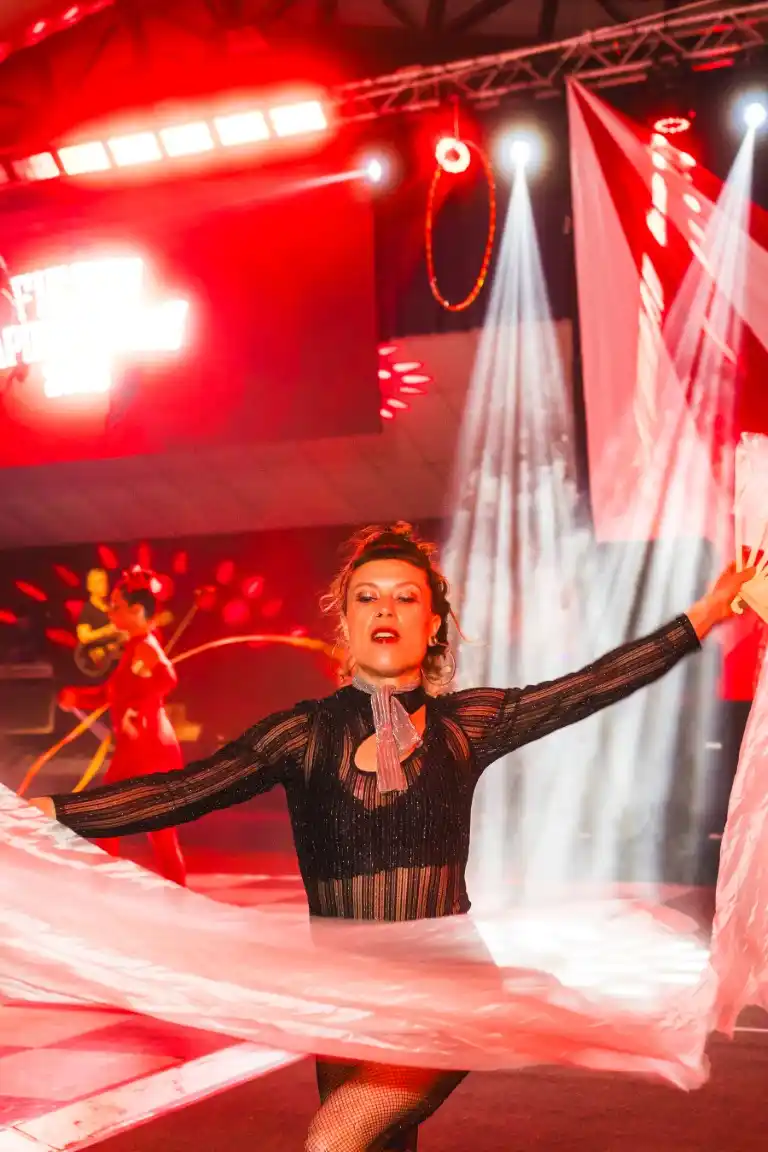 Nuestros espectáculos están diseñados para integrarse de forma natural en distintos tipos de eventos, combinando arte, elegancia, interacción con el público y un fuerte componente visual.